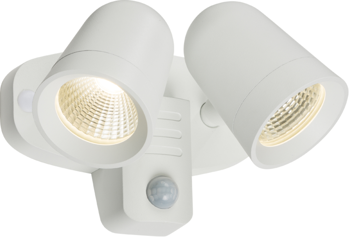 230V IP65 18W LED twin spot floodlight in white – with PIR sensor