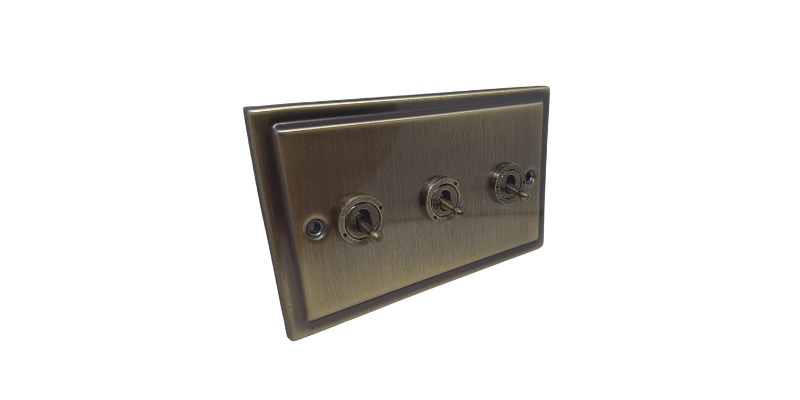 Regency Antique Brass 20AX 3 2 Way Gang Toggle