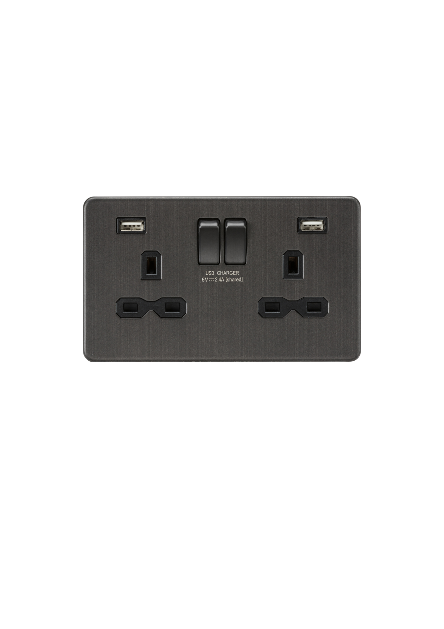 This charger socket is a great finishing touch to any modern home. Screwless low profile metal design with matching metal rockers. Built in Dual USB Charger